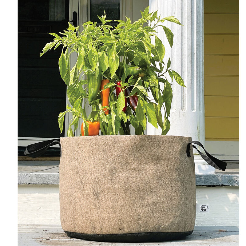 Developed exclusively for Johnny’s, these natural color Smart Pots with rugged, high-strength black handles are a perfect mix and match patio complement to Johnny’s line of standard black Smart Pots. The natural color absorbs less heat in direct sunlight making them a popular choice in warmer climates.10-gallon capacity is recommended for broccoli, cabbage, eggplant, and peppers. Unlike plastic plant pots, Smart Pot fabric walls air-prune the roots, allowing more efficient moisture and nutrient absorption, while maintaining comfortable soil temperatures through evaporative cooling. Trusted by growers for over 30 years. Made of inert, porous, geotextile fabric. BPA and lead-free. Not compostable or biodegradable. Made in USA. 16" diameter. 11.5" tall. Media needed to fill: 1.34 cubic ft. Quantity: 1 pot. Other sizes and quantities also available.
