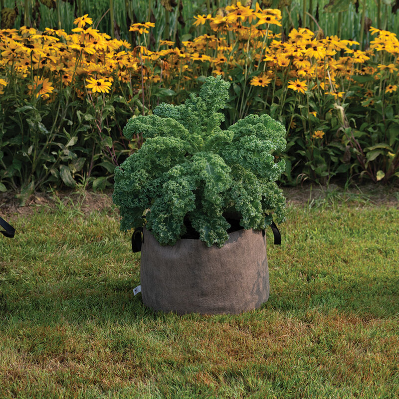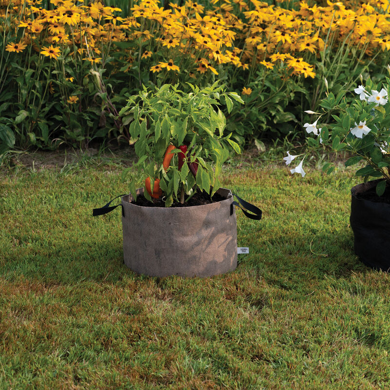 Developed exclusively for Johnny’s, these natural color Smart Pots with rugged, high-strength black handles are a perfect mix and match patio complement to Johnny’s line of standard black Smart Pots. The natural color absorbs less heat in direct sunlight making them a popular choice in warmer climates.15-gallon capacity is recommended for potatoes and squash. Unlike plastic plant pots, Smart Pot fabric walls air-prune the roots, allowing more efficient moisture and nutrient absorption, while maintaining comfortable soil temperatures through evaporative cooling. Trusted by growers for over 30 years. Made of inert, porous, geotextile fabric. BPA and lead-free. Not compostable or biodegradable. Made in USA. 18" diameter. 13.5" tall. Media needed to fill: 1.99 cubic ft. Quantity: 1 pot. Other sizes and quantities also available.