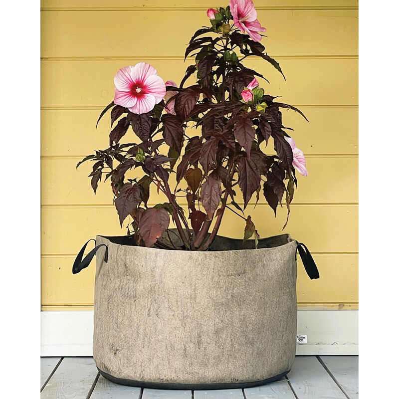 Developed exclusively for Johnny’s, these natural color Smart Pots with rugged, high-strength black handles are a perfect mix and match patio complement to Johnny’s line of standard black Smart Pots. The natural color absorbs less heat in direct sunlight making them a popular choice in warmer climates.30-gallon capacity is recommended for tomatoes and melons. Unlike plastic plant pots, Smart Pot fabric walls air-prune the roots, allowing more efficient moisture and nutrient absorption, while maintaining comfortable soil temperatures through evaporative cooling. Trusted by growers for over 30 years. Made of inert, porous, geotextile fabric. BPA and lead-free. Not compostable or biodegradable. Made in USA. 24" diameter. 16" tall. Media needed to fill: 4 cubic ft. Quantity: 1 pot. Other sizes and quantities also available.